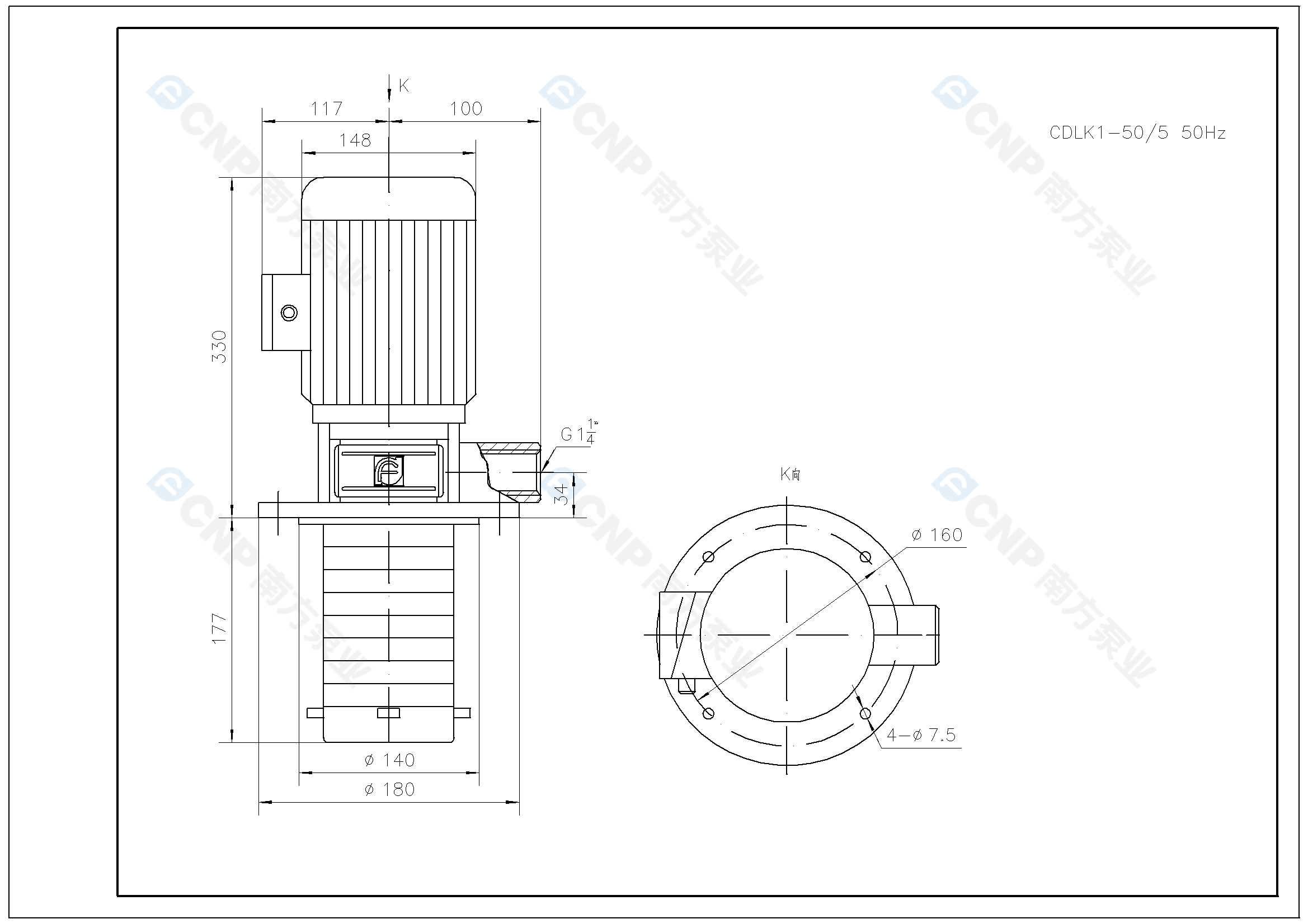 需要南方泵CDLK1-50/5外形CAD文件 請加銷售人員微信索取