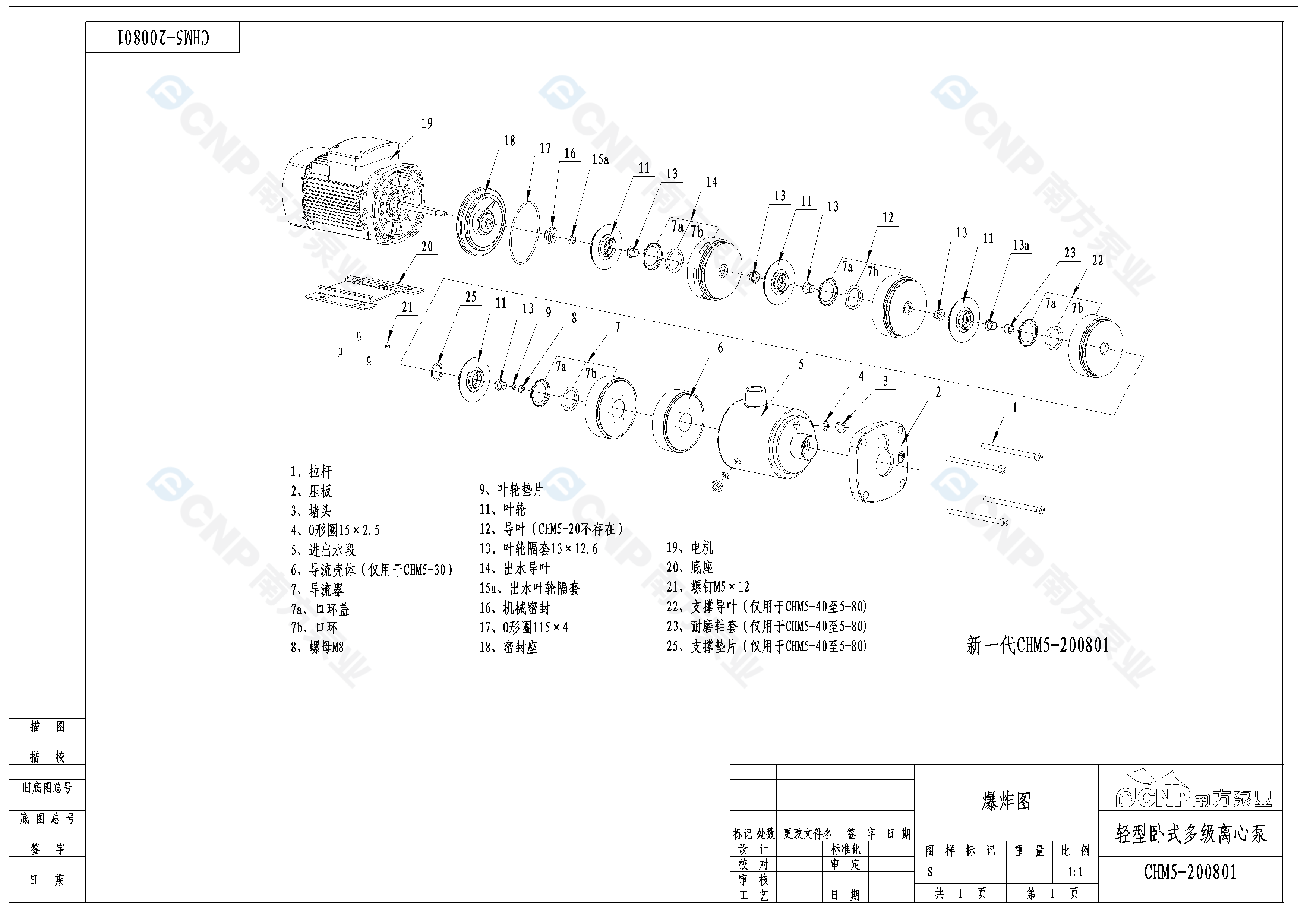 南方泵業(yè)CHM5-20水泵明細(xì)參數(shù)